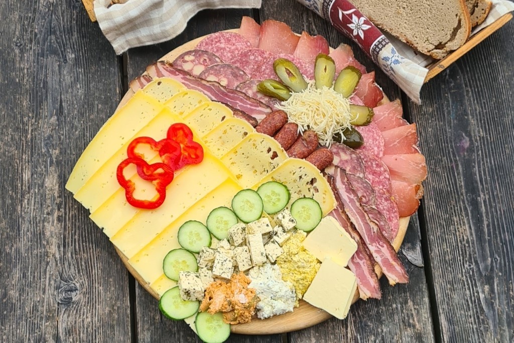 Neben selbst erzeugten Milchprodukten verköstigen wir Sie auch mit frisch gebackenem Brot und Produkten von unseren Rindern und Schweinen.